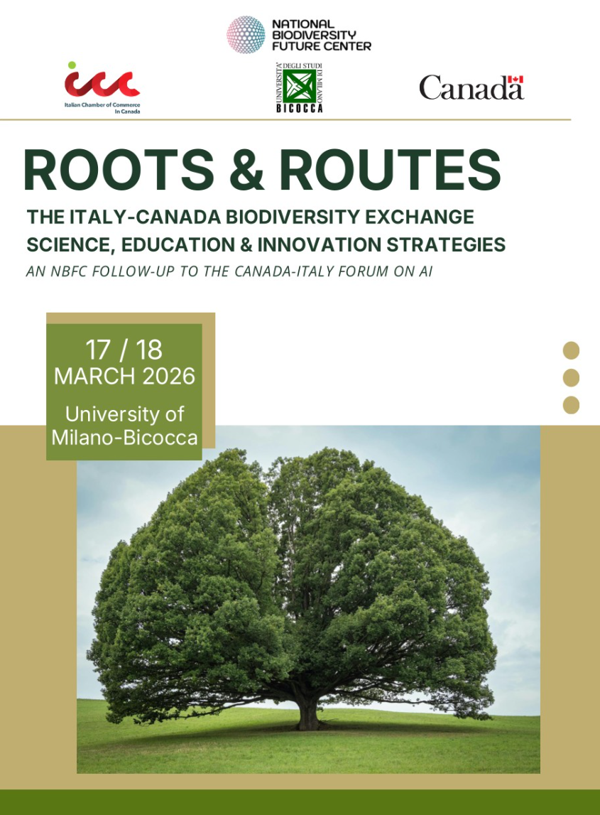 Il 17 e 18 marzo 2026, l’Università degli Studi di Milano-Bicocca ospita Roots & Routes – The Italy–Canada Biodiversity Exchange: Science, Education & Innovation Strategies, iniziativa promossa dal National Biodiversity Future Center (NBFC) e dalla Camera di Commercio Italiana in Canada.