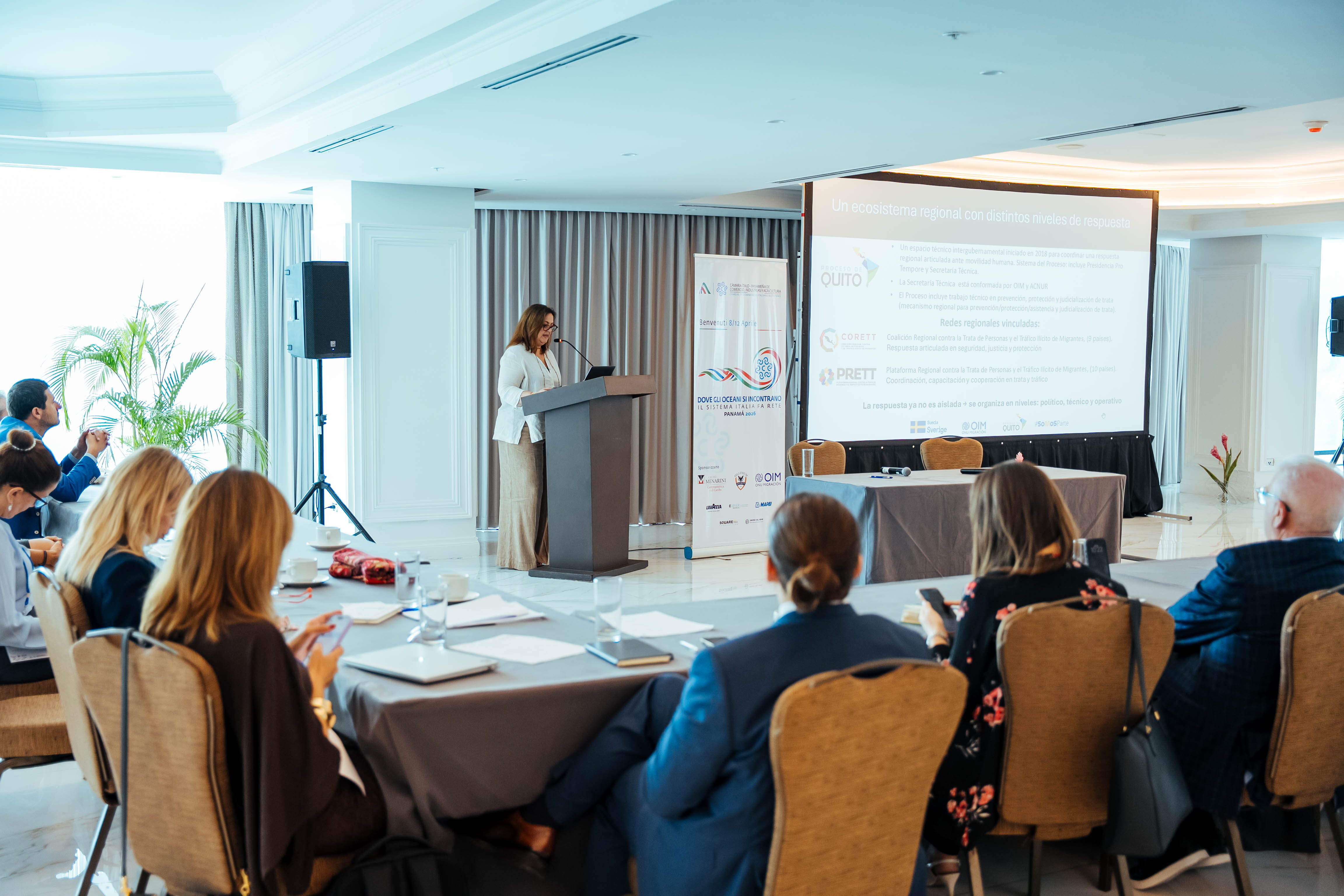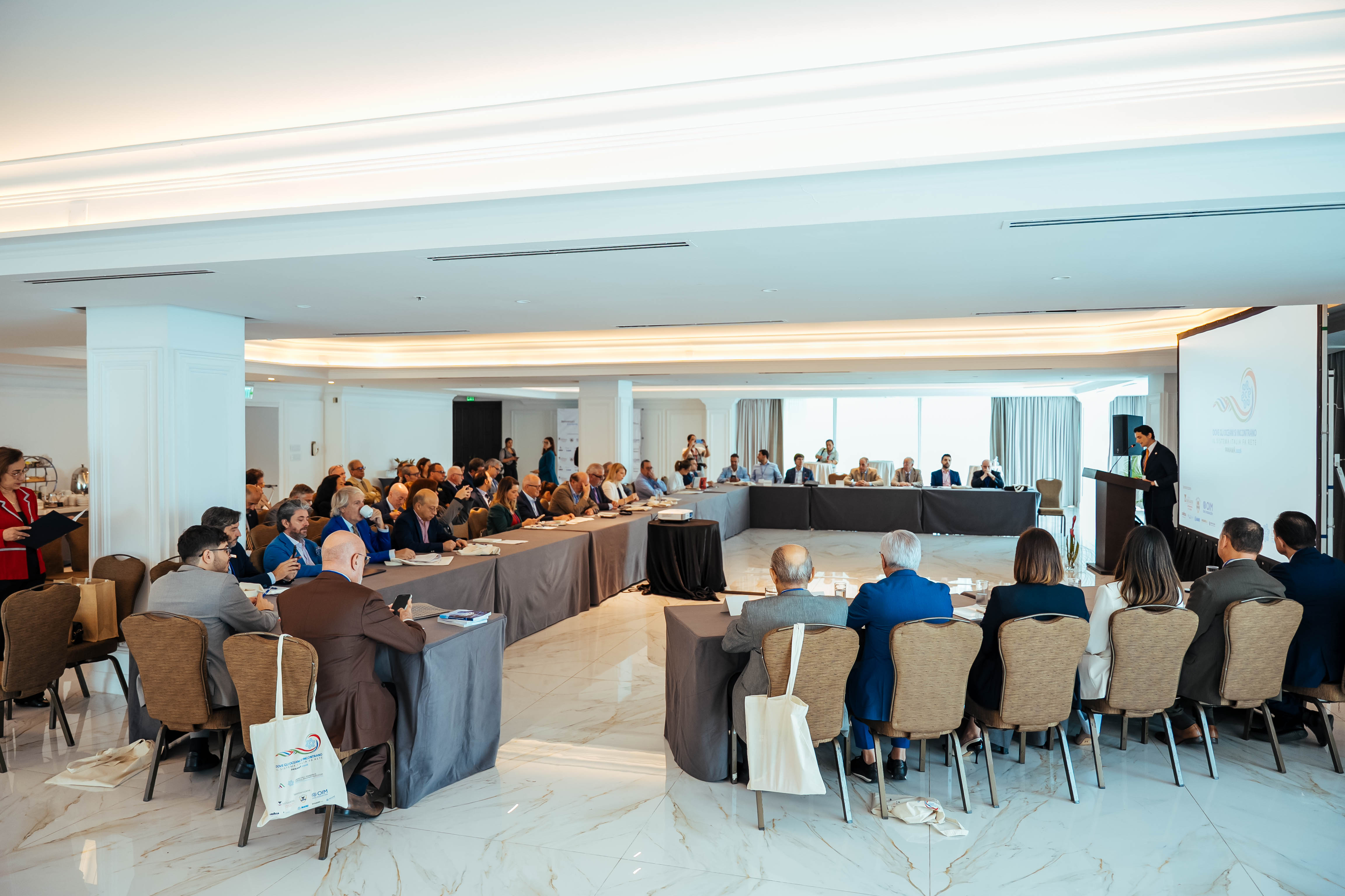 I lavori sono stati aperti da Vittorio De Sanctis, presidente della Camera di Commercio Italo-Panamense (CAMIP), e hanno visto tra i primi contributi quello dell’Organizzazione Internazionale per le Migrazioni, che ha posto l’attenzione sul tema della mobilità.