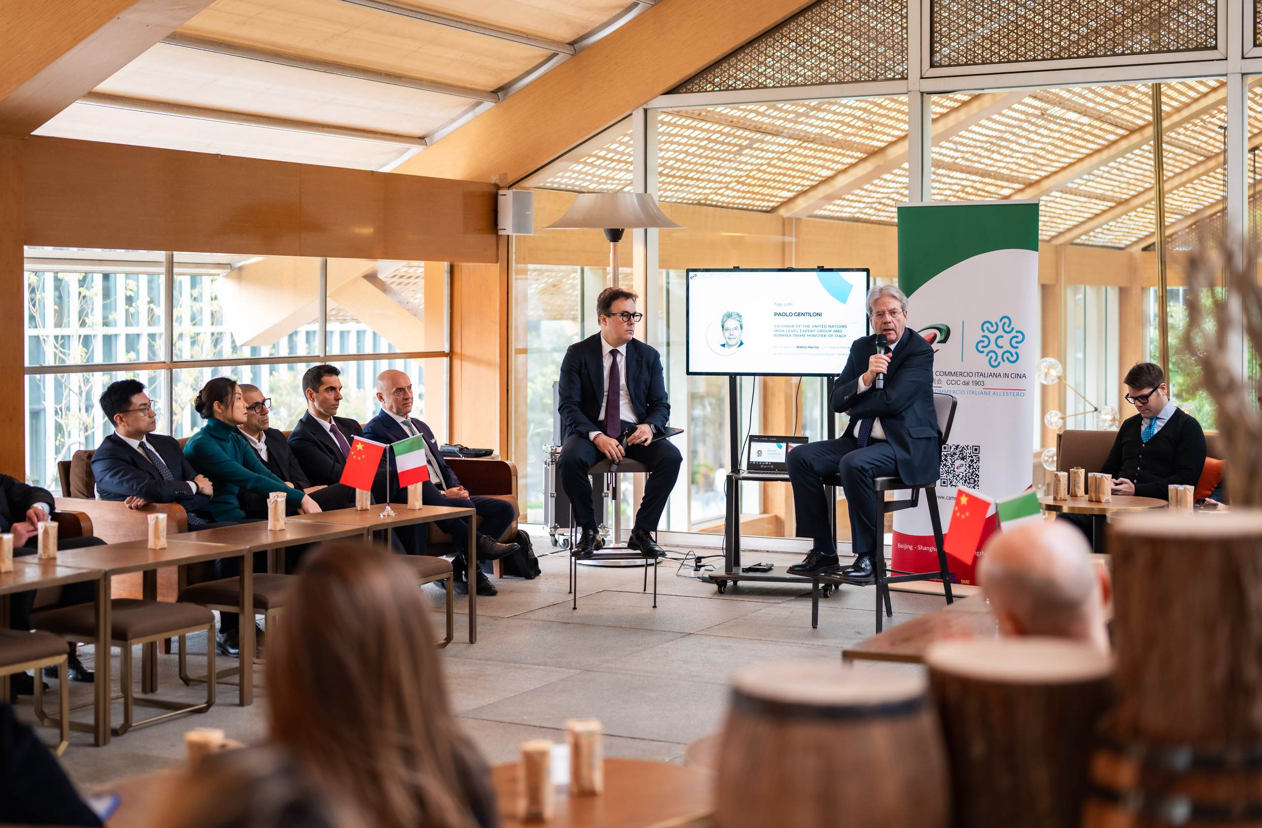 Il fulcro della mattinata è stato il dibattito con Paolo Gentiloni, moderato da Mattia Marino (Consigliere CCIC e CEO China di The European House - Ambrosetti). Nel corso dell’incontro, i partecipanti hanno avuto l’opportunità di interagire direttamente con l’ospite in una sessione di domande e risposte, approfondendo le principali dinamiche che influenzano il contesto economico globale e le ricadute per le imprese italiane attive in Cina.