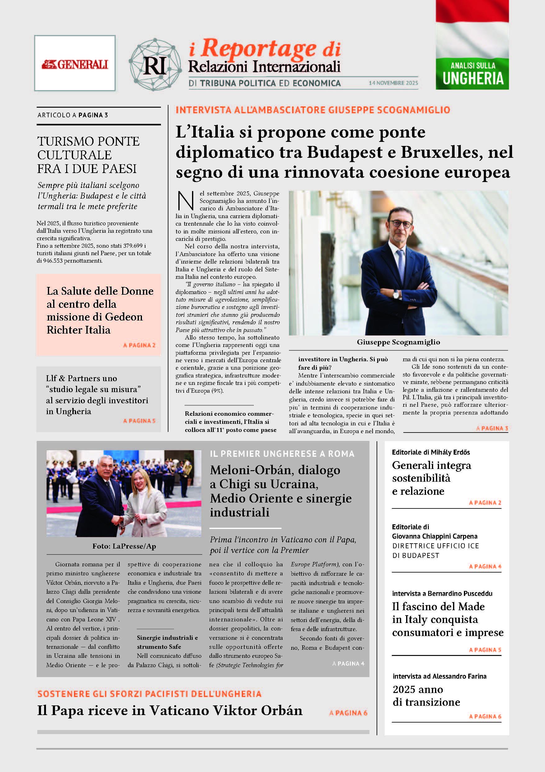 A pagina 5, l'intervista a Bernardino Pusceddu, Presidente della Camera di Commercio Italiana per l’Ungheria, sulle relazioni economico-commerciali tra Italia e Ungheria.